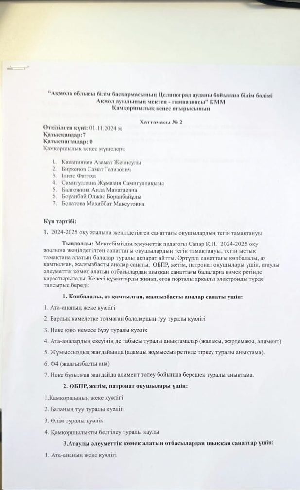 «Ақмола облысы білім басқармасының Целиноград ауданы бойынша білім бөлімі Ақмол ауылының мектеп-гимназиясы» коммуналдық мемлекеттік мекемесі