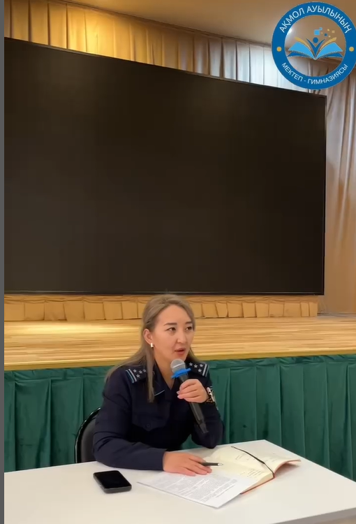 КММ «Акмола облысы білім басқармасының Целиноград ауданы бойынша білім бөлімі Ақмол ауылының мектеп гимназиясында» ІІІ тоқсан ақпан айының жоспарына сәйкес Целиноград ауданының КПП Аға жедел уәкілі полиция майоры Капаров Ж.Т. және Целиноград ауданының КПП жедел уәкілі полиция капитаны Рсалиева Ж.А. және тәрбие ісінің орынбасары Туленбекова Ш.К. 9,10,11 сынып оқушылармен кездесу өткізіп, әңгіме жүргізді.
