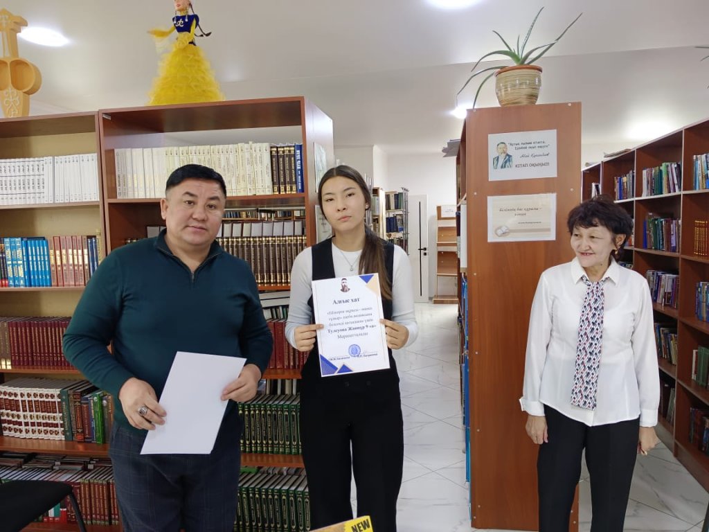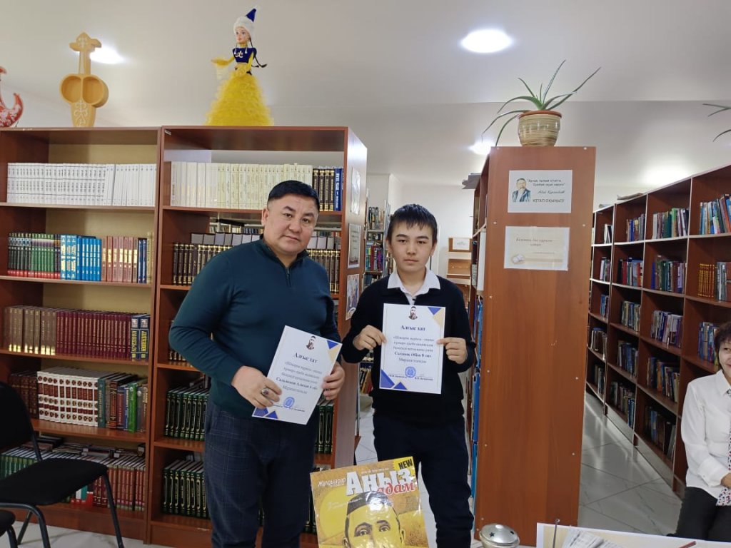 Ақмол ауылының мектеп-гимназиясының оқушылары аудандық кітапханада өткізілген "Шәкәрім мұрасы - өшпес ғұмыр" атты іс-шараға белсенді қатысып, өлеңдерін оқып, марапатқа ие болды